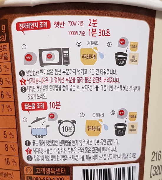 그중에서 낙지콩나물비빔밥 컵밥을
