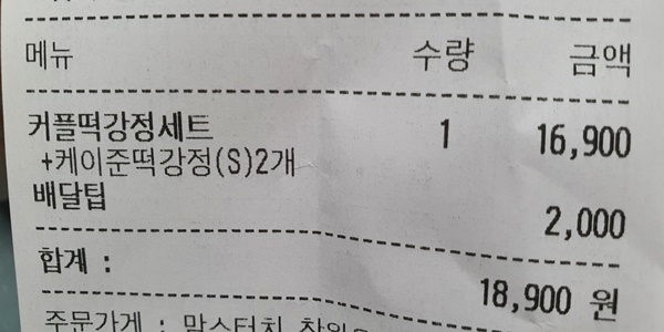 제가 주문한 건 맘스터치 커플떡강정세트인데요.