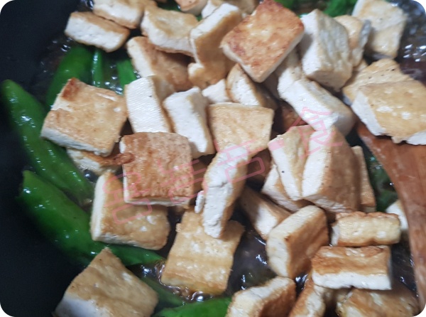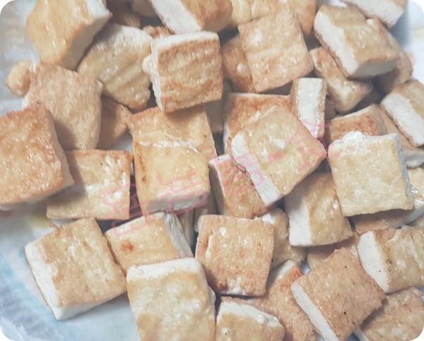 물을 뺀 두부를 넣어 굽습니다.