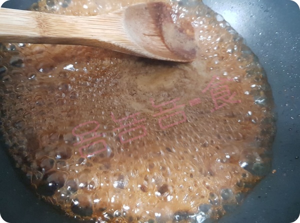 두부스팸볶음의 양념이 끓어오를때