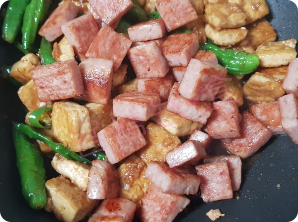 스며나는 두부스팸볶음이 완성이 됩니다.