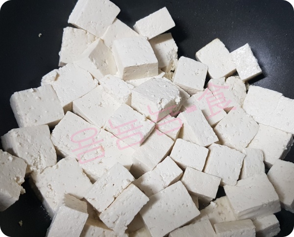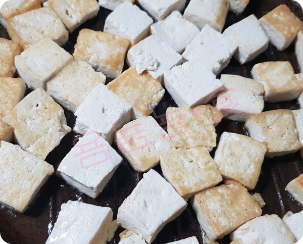 물을 뺀 두부를 넣어 굽습니다.